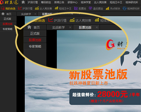财急送四大产品“正式版、新股票池版、新专家策略版、专家实战版”,一站式解决股民的投资难题!