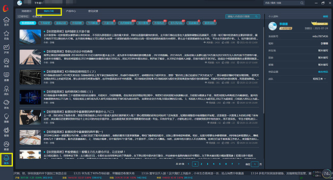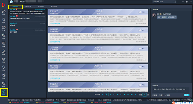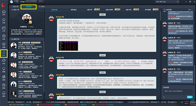 依托公司强大的研发团队,全力打造的一个集合投顾研发、分析团队、客服与投资者沟通的即时交流平台,以钱坤财急送终端为服务载体,提供投资建议,股票操作指导等投资顾问式服务功能,该功能引入了投资研究部的大量证券研究报告,再通过投资专家运用主力分析,技术分析等分析手段加以筛选,选出的具备投资机会的优质个股,实现最简单,最直观,最有效的股票投资指导